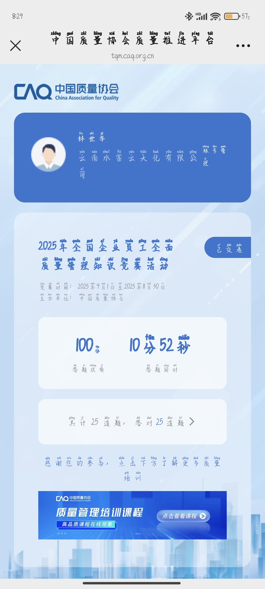 9月是全国第48个质量月,为深入贯彻落实全面质量管理的理念,提升全员质量意识与专业素养,化肥装置积极响应号召,组织全体员工参加“2025年全国企业员工全面质量管理知识竞赛”活动。截至目前,班组已实现全员参与,展现了良好的学习风貌和团队凝聚力。