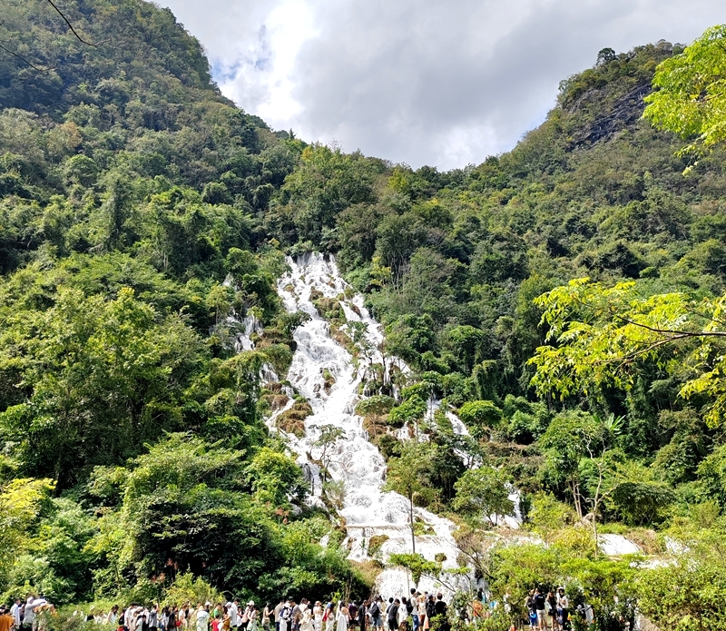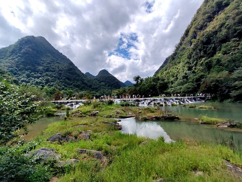沿着响水河行走,68级跌水瀑布层层叠叠,一路欢歌。水流从高处跌落,形成大小不一的水潭和瀑布,在绿树怪石间跳跃。时而如珠帘垂落,时而如银链轻晃,水声或清脆或轰鸣,如同大自然奏响的灵动乐章。行走在瀑布旁的步道上,伸手就能触摸到飞溅的水花,清凉的触感驱散了旅途的疲惫。