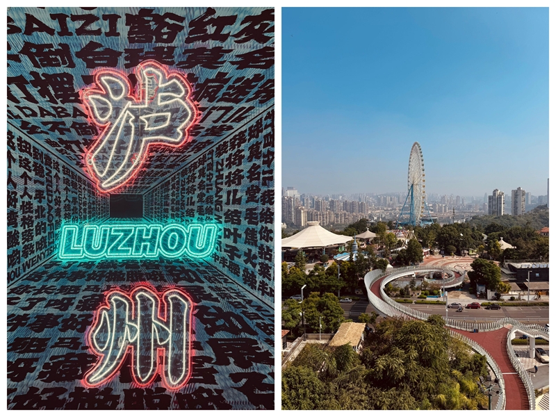 第一站,泸州城市记忆与文化艺术地,这里是川南首家24小时不打烊特色文旅街区,也是泸州的“城市会客厅”。走入其中,你会被老街老巷老门市的怀旧氛围所吸引。这里的建筑和装饰把泸州的历史故事、非遗文化、城市形象进行了创新性、年轻化的表达。