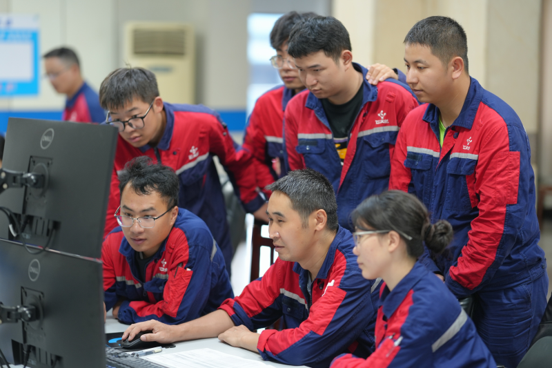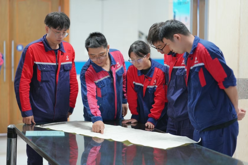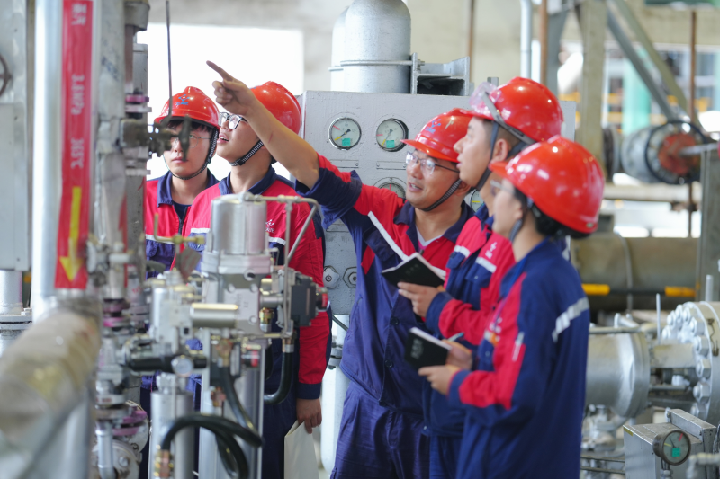 尽管脸庞尚显稚嫩,但他们的眼神专注而明亮。手中的流程图被翻得卷边泛黄,仍对着设备一一确认阀门与测点;遇到看不懂的结构,立即拍照记录,回去继续请教;他们还自发组建“学习分享”微信群,随时分享现场所见所思,彼此答疑、共同进步。