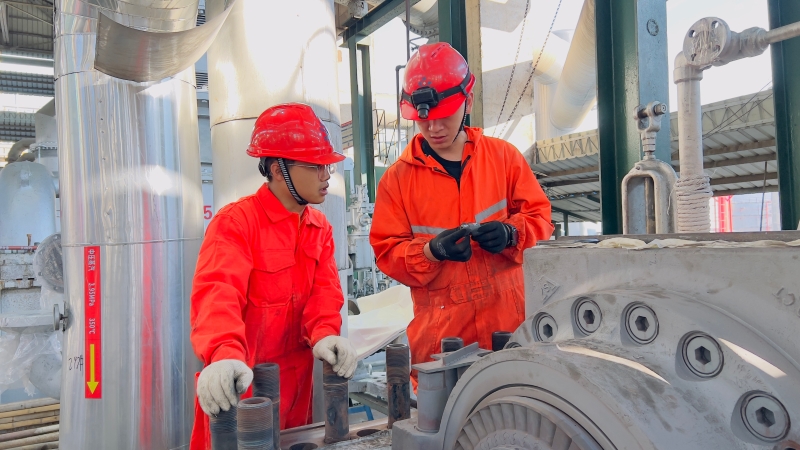 在省劳模陈平的教导下,去年入职的王亮和今年入职的陈科帝有了“新”的转变。他们参与了合成103-JHP压缩机大修,一是能吃苦,跟着仔细清洗设备零件、打大锤、拆装设备、测量数据;二是爱学习,认真做笔记,学原理、学技巧,还要学企业文化;三是主动干,他们从一开始看着师傅干,转变为主动干,慢慢成了主力。