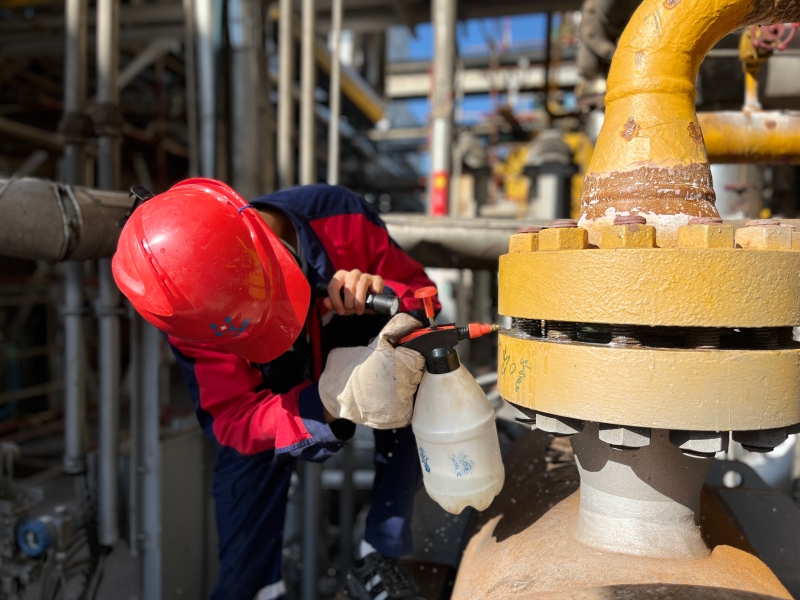 正午的阳光最是浓烈,把化肥装置的钢架晒得发烫,空气里飘着设备热烘烘的气息。检修平台上,工人师傅们的身影被阳光拉得笔直,各色工装后背洇出的汗渍,像地图上深浅交错的河流。有人半蹲在管线旁,焊枪一抬,金红色的火花便在阳光下炸开,溅在防护面罩上,映出一圈圈细碎的光;有人双手紧握扳手,手臂青筋绷起,阳光落在他黝黑的脖颈上,汗珠顺着安全帽的系带往下滑,滴在设备上,瞬间化作一缕轻烟。这光不吝啬,把奋斗的模样照得分明,连工装衣角飘动的弧度,都裹着滚烫的干劲。