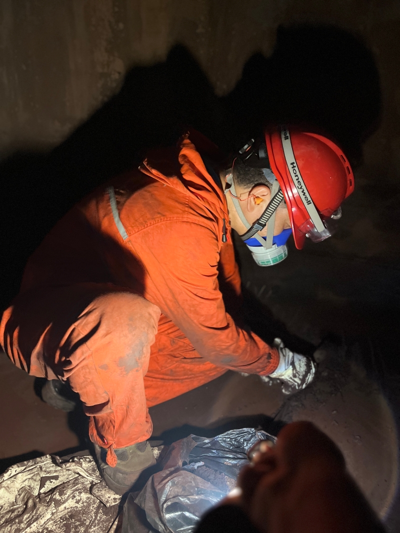 而装置的“肚子”里,是另一种光影世界。有些塔罐的入口仅容一人通过,钻进去的瞬间,外界的强光便被隔绝,只剩头顶防爆灯投下的圆晕。工人们穿着密不透风的防护服,在狭窄的空间里清理内壁结垢,身影在光影里时隐时现。灯光照亮他们睫毛上沾的粉尘,也照亮罐壁上残存的尿素结晶,那些白色颗粒在暗处闪着微光,像藏在沉默里的星。他们的动作轻而稳,每一次挥动刮刀都精准利落,呼吸声在密闭空间里格外清晰;这里没有阳光的热烈,却有专注凝成的力量,阴影遮不住眼底的认真,反而让这份坚守更显厚重。