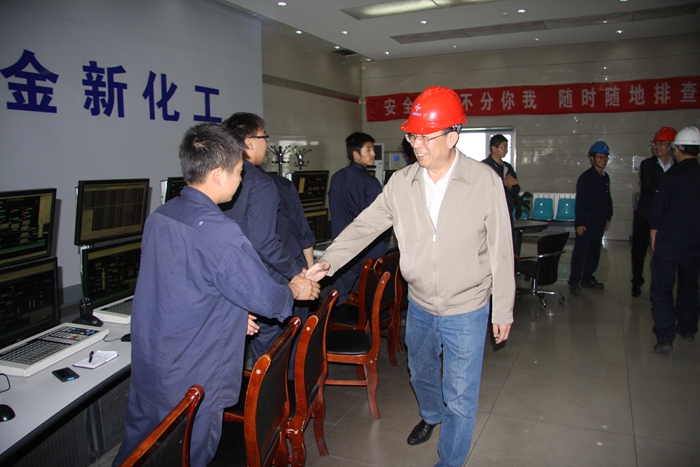 金新化工新任总经理袁六四在现场了解情况