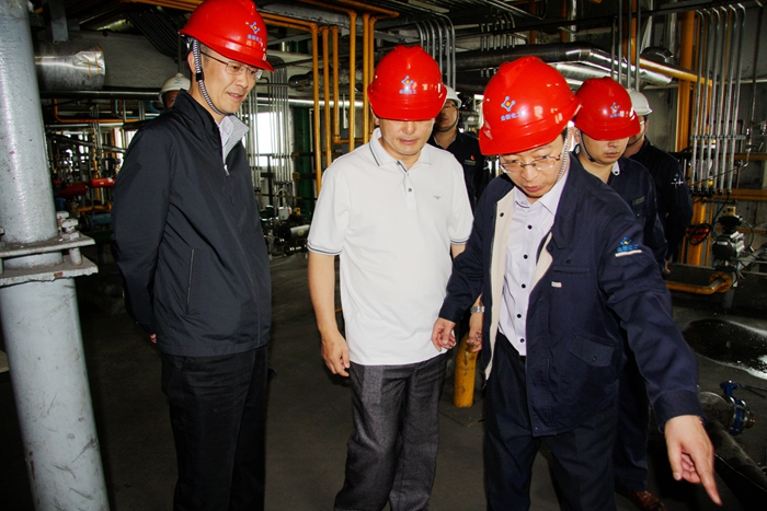 金新化工党委书记陈大文,副总经理李钢、简开忠、张环,东明总经理汪云川,工艺副总工程师祝志、鄢僖陪同调研。