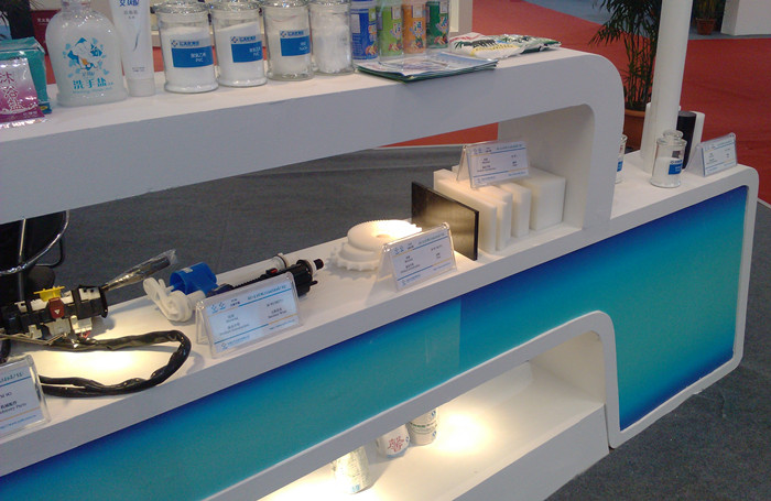 由云天化集团运营协调部牵头,水富云天化、云南盐化、天创科技、中轻依兰等相关单位参加了展会。天盟连锁总经理助理徐兴致、国际贸易部及上海分公司相关人员积极参展。云天化集团本次展出了M90、M270、ST-10、GF-25等各种型号聚甲醛原料,板棒材、电子配件、汽车配件、齿轮、管接件、拉链等制件;“白象”牌加碘精制食盐、“艾肤妮”系列日化盐产品、PVC、烧碱、盐酸;“依兰”洗衣粉洗涤剂等产品,吸引了大批的客户前来参观和咨询交流。