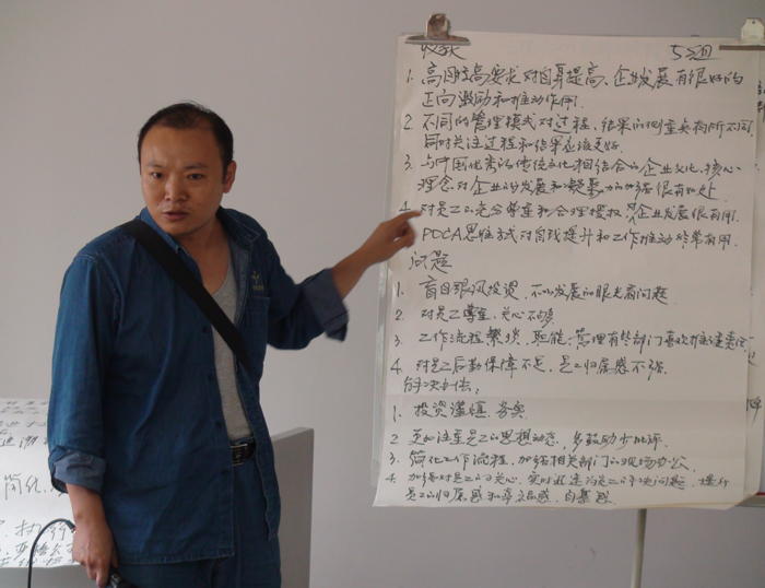 会上,与会技术人员在各自组内分享了此次参观交流的收获,同时也围绕公司存在的问题进行了热烈的讨论,碰撞智慧的火花。经过一个小时的讨论,TDP项目培训的五个小组汇总并分享了各自的成果,大家也针对总结出的成果在组间进行了探讨,提出了许多建设性的意见与建议。