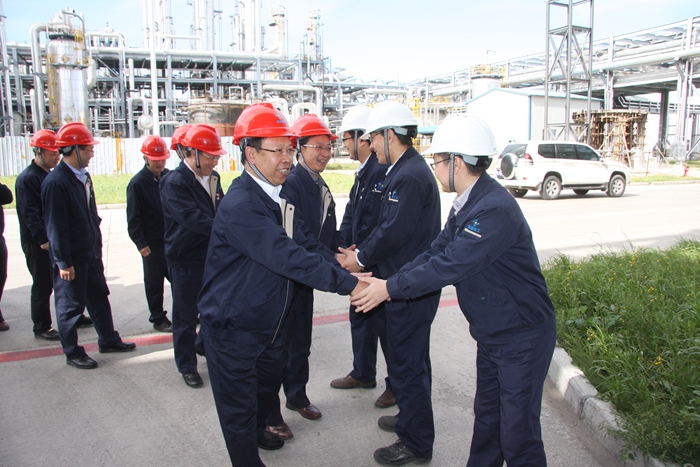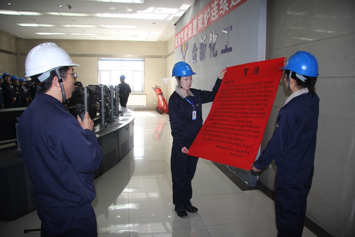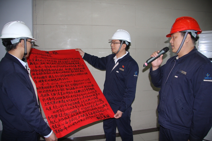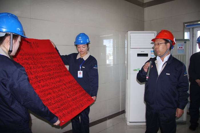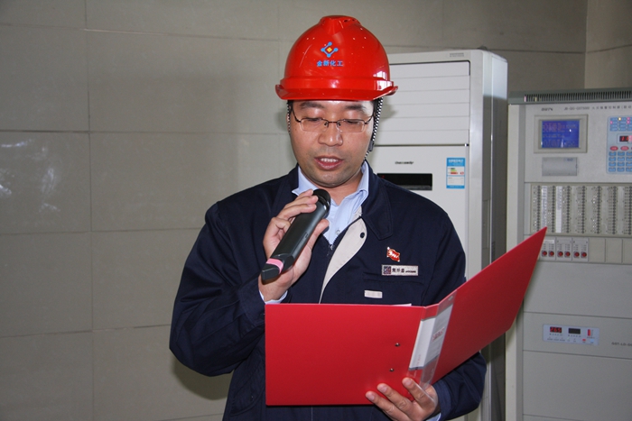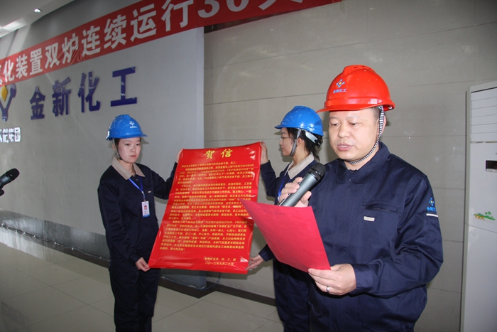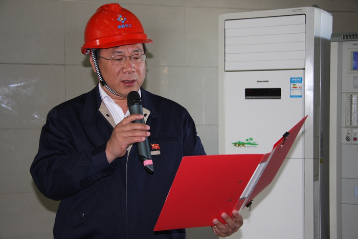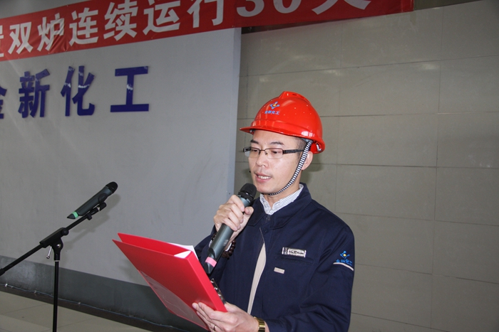 金新化工副总经理林旭楠宣读金新集团、金新国际贺信