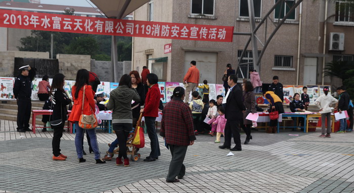 活动在云天小区下沉式广场举行。本次宣传系列活动中,公司消防部主要以发放宣传资料、展示安全教育展板等形式警示大家要关注安全,珍爱生命。活动现场,公司广大员工及家属认真学习了消防、道路安全常识以及发生事故时的自救方法。与往年相比,值得一提的是,今年很多小朋友也在家长的带领下来到活动现场学习各类安全知识,为今年的“119消防日”宣传系列活动增添了一道独特的风景。