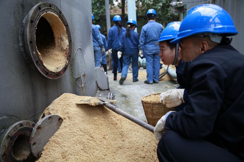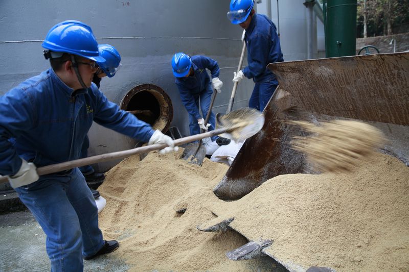 随后,突击队员们迅速分组,开始战斗,小伙子们抡起铁锹,将滤料挖出,姑娘们将滤料装进竹筐,抬到翻斗车处倒掉。渴了,喝口水,绝不多耽误时间;累了,稍做休息,继续战斗;手掌磨红了,换下手继续干;脚底下磨起了水泡,也只是付之一笑。在狭窄的空间中,潮湿的环境里,突击队员们干得热火朝天,时值寒冬,突击队员们却汗水淋漓。