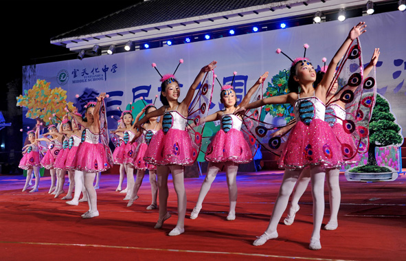 29日晚,学校高中部、初中部四千余名师生欢聚理想广场,广场上一片流光溢彩,热闹非凡。云南水富云天化有限公司党委副书记、纪委书记、工会主席宋玉,水富县相关部门领导,以及学校全体行政领导出席了晚会现场。在音乐情境剧《云天化中学的日子》曼妙的歌声中,第三届艺术周活动闭幕时刻正式走向倒计时。来自小学、初中、高中学生,以及教师共计20个精彩的节目纷纷走向舞台,以不同的形式向第三届艺术周活动表达难舍之情。覃连波老师一曲《幸福赞歌》,既是全校师生对第三届艺术周活动圆满结束的赞歌,也是对云天化中学美好未来的深情祝愿。随着全体演职人员走上舞台,云天化中学第三届艺术周活动完美落下帷幕。