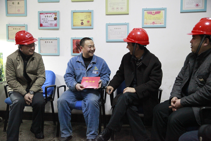 1月7日早上,他盛华一行首先看望了“全国五一劳动奖章”获得者陈洪道。一见面,他盛华便亲切地与陈洪道握手交谈,述说起陈洪道年年超额完成任务,一年完成近两年劳动定额的先进事迹,感谢他多年来为公司所做出的贡献,并希望劳模精神能够在公司代代相传。随后,他盛华代表集团向公司困难职工和劳模送上了新春的问候和祝福。