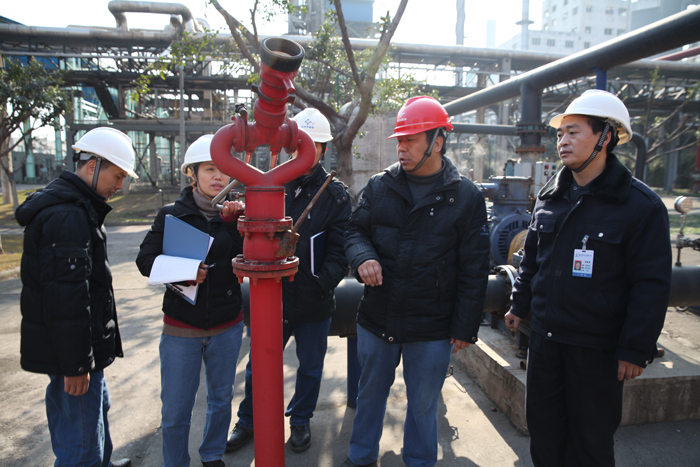 当天的检查由公司总经理助理杨志,工艺副总工程师刘丙富、邓万明,生产运营总监王国强分别率队进行。检查人员每到一处,从公司员工对劳动纪律的执行情况,到生产现场安全管理及设备设施检查维护等都进行了详细的了解,对消防设施等器材使用和保护情况进行了摸底调查,对一些重大危险源诸如储槽罐区进行了重点检查,同时,也对现场“6S”管理等进行了较为细致的检查。