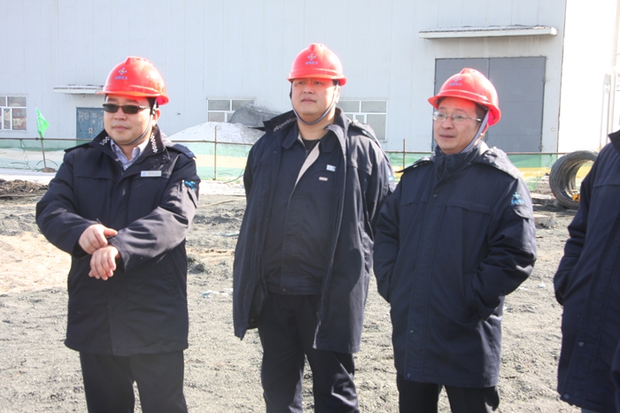 金新化工副总经理李钢、张环、生产管理总监鄢僖在现场