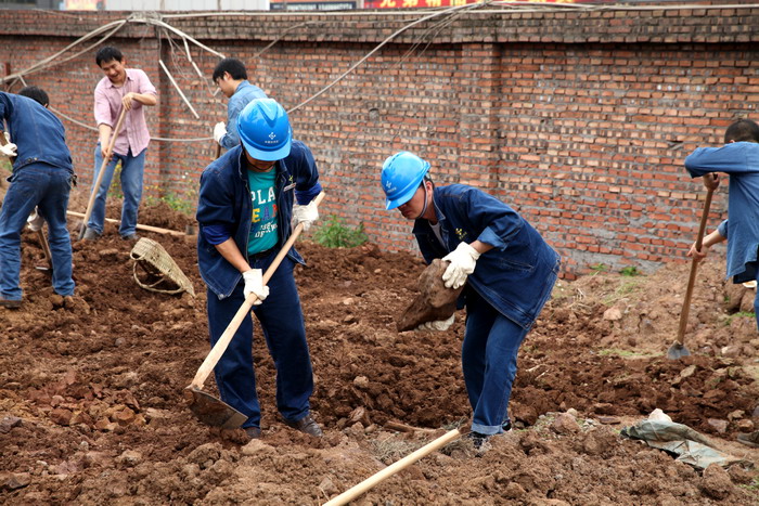 然而,对于还未种植植被的区域而言,任务就显得更加繁重,不仅需要翻松和平整区域内的泥土,还要把土里的石块挑拣并搬运出来。在很多人看来,铁锹和锄头都已经是儿时记忆中的物件了,而对于那些在城市长大的员工来说,翻土和锄地这样的劳动更是离自己很遥远,手握久违甚至陌生的铁锹和锄头,一时间还真不知道该如何下锄,面对坚硬的地面和硕大的石块,加上体力的不济和经验的缺乏,让看似简单的劳动变得异常艰辛,几个回合下来,人就感觉身体困倦,四肢酸痛,手上起了水泡。