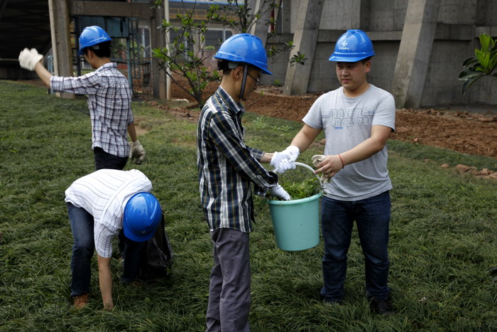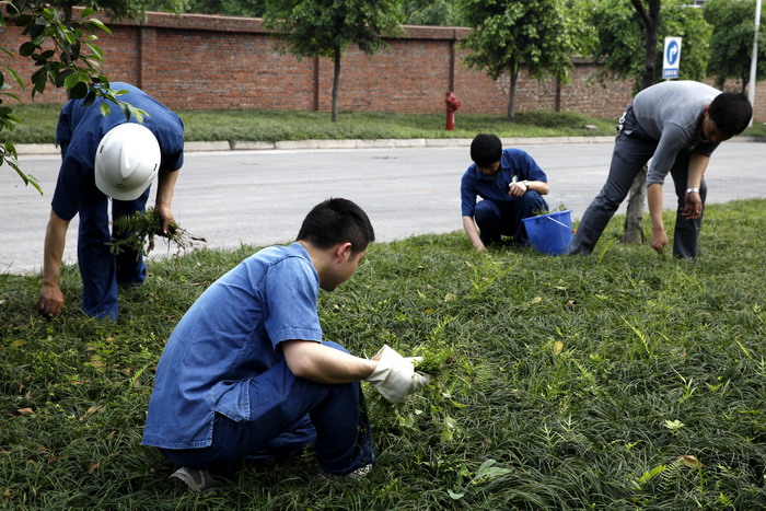 在公司的统一安排下,各支部的员工走进了所管辖的绿化区域,对区域内的未开垦荒地进行平整,对草坪进行除杂草、浇水和补种。一时间,生产区内一顶顶蓝帽子、白帽子甚至是红帽子,星星点点,在各处涌动。