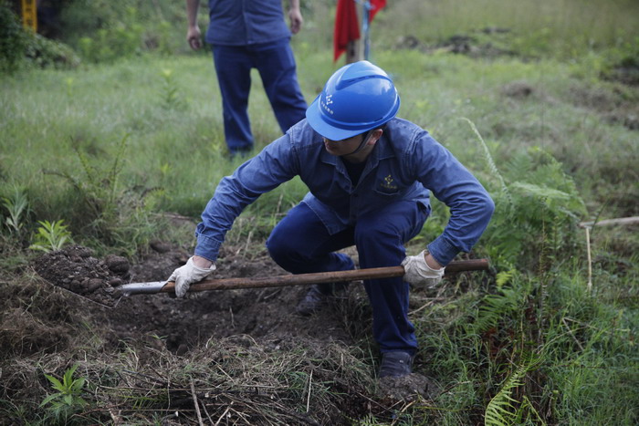 在公司团委的组织和号召下,来自公司17个基层团支部的近200名青年来到煤代气装置周边荒地参与了植树活动。在杂草丛生、废弃物堆弃其中的植树点,青年志愿者们挥舞起手中的工具,先把荒地的杂草、荆刺砍倒,再将荒地内堆放的朽木、垃圾逐一清理出去。在鲜艳的团旗下,青年党员们个个身先士卒,团员们也当仁不让,捋起衣袖,手提肩扛,雨水和汗水混合在一起,浸湿衣衫,被虫蚊叮咬,甚至荆刺透过手套划伤手指,青年志愿者们依然不怕脏、不怕累,争先恐后,沉浸在劳动的快乐中。