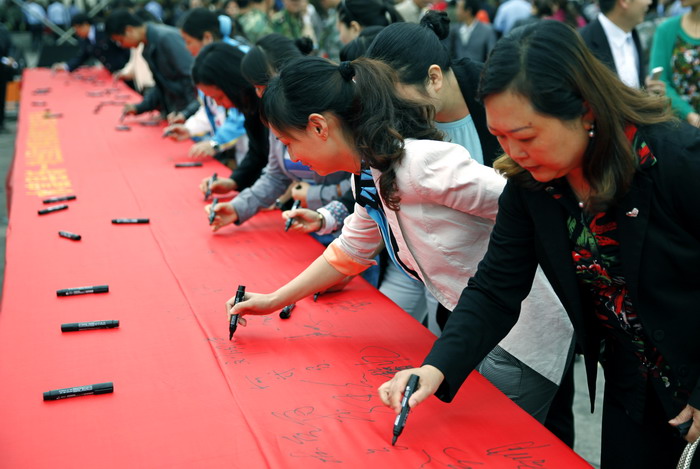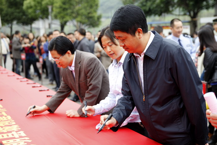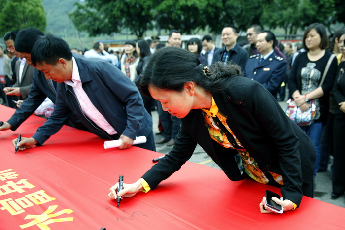 随后,社会各阶层代表分别发言。县委书记薛桂强宣布:新一轮全国文明县城创建工作启动。仪式上,公司45名志愿者与来自全县各级各部门的干部职工,各街道、社区群众,青年志愿者共计千余人一起参与了签名活动。水富县本次动员大会号召各级各部门各单位和广大干部群众,务必统一思想,深化认识,切实把水富县新一轮全国文明县城创建工作抓紧抓好,抓出成效。
