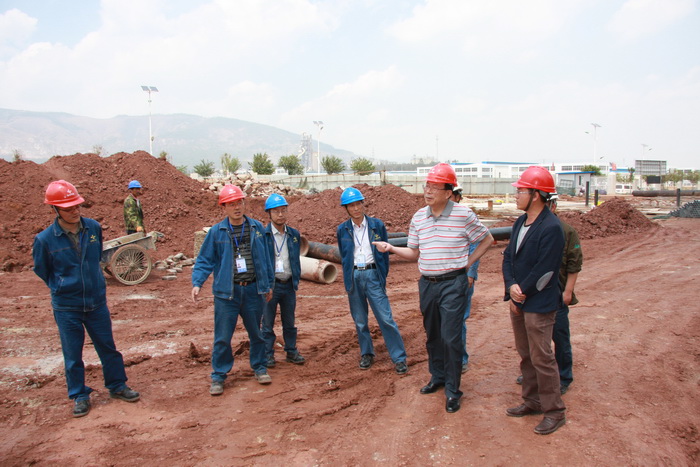 4月30日下午,云天化集团总经理张嘉庆在昆明纽米科技党支部书记、副总经理胡晓东,副总经理马骁以及相关部门领导的陪同下,到昆明纽米科技施工现场进行实地视察指导工作。
