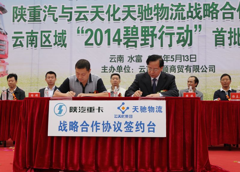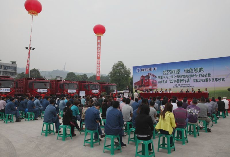陕重汽是中国重载汽车行业的标兵,其中天然气重卡产销量连续多年稳居市场第一位,被誉为行业领导者。天驰物流作为云天化股份的全资子公司,从2011年6月独立运营以来,一直积极推进和优化物流运营模式,致力于发展绿色物流,LNG重卡车以液化天然气为燃料,与传统燃料重卡车相比,具有清洁高效、节能低碳等优势特点,有着良好的社会效益和经济效益,对推动企业产业升级、可持续发展和地方经济建设具有重要的作用。