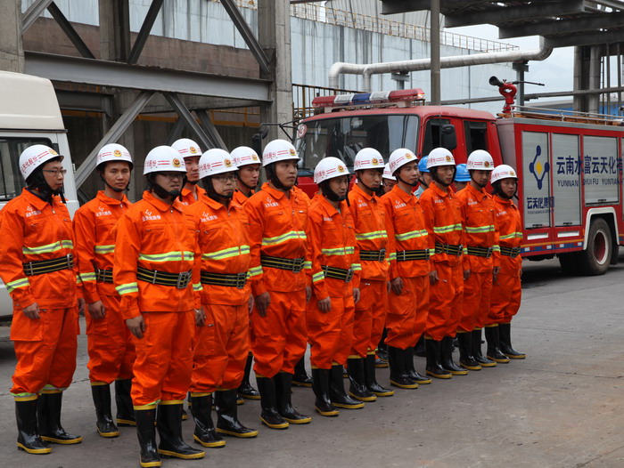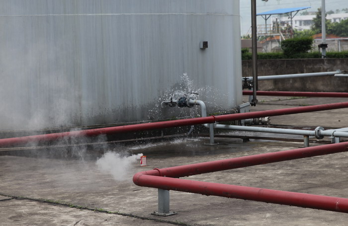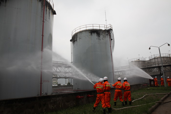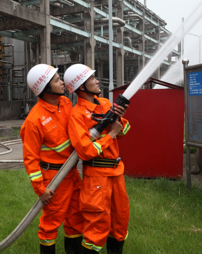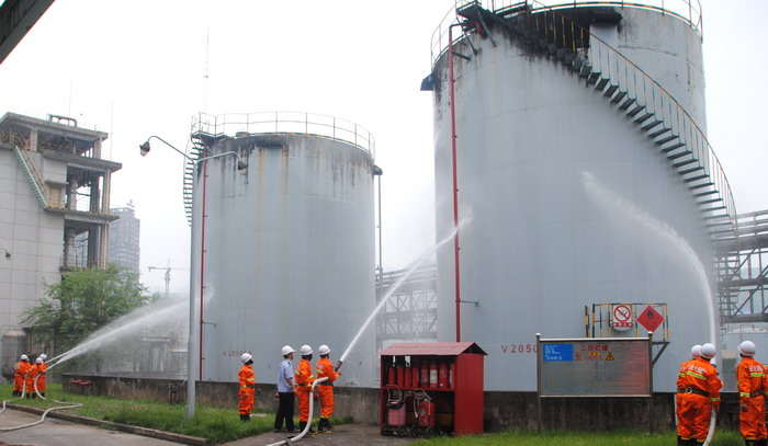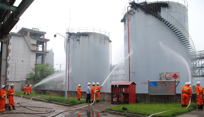 23日下午,在消防部的组织下,消防应急救援分队队员们在公司季戊四醇装置进行了事故处置预案演练,事故模拟季戊四醇装置乙醇储罐发生泄漏,主控人员通过视频监控,发现乙醇储罐因阀门泄漏而引发着火,并对相邻的另一储罐构成严重威胁,一名巡检操作人员晕倒在现场。演练过程中,队员们把几天来学习掌握的内容充分应用到了实战中,监控、报告、疏散、救人、灭火等环节紧密衔接,季戊四醇车间、消防部等单位迅速联动,收到了良好的效果。