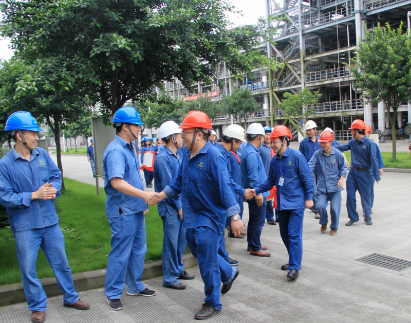 祝捷队伍行进到主控室门口,受到了等候多时的生产部干部员工的列队欢迎,祝捷队伍同生产部干部员工一一握手,互致祝贺。
