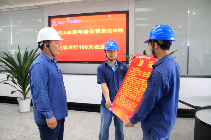 “咚咚锵,咚咚锵,咚咚咚咚咚咚锵……万里长江之畔、国家级重庆长寿经济技术开发区云天化聚甲醛生产基地锣鼓喧天、气氛热烈、佳音缭绕、喜庆无比。”截至6月24日15时18分,水富云天化重庆公司A套聚甲醛装置聚合B线安全、稳定、连续运行100天,喜讯传来,公司上下奔走相告,热烈庆贺。