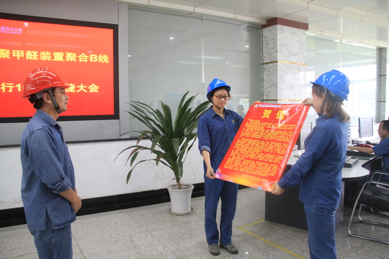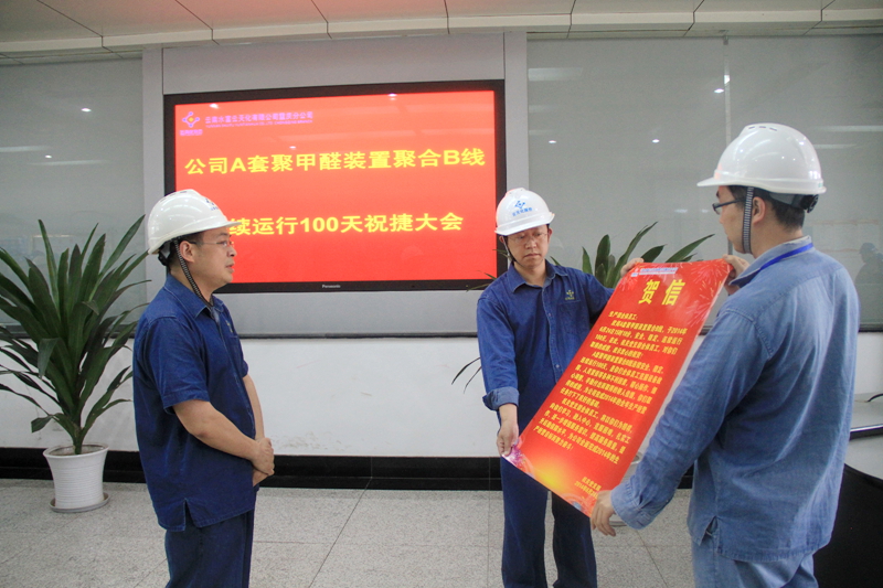 重庆分公司副总经理杨骁在祝捷大会上,宣读了公司党、政、工贺信。贺信中强调,公司A套聚甲醛装置聚合B线,安全、稳定、连续运行100天,可喜可贺、来之不易、倍受鼓舞,公司首个“百日红”的取得,意义重大,影响深远,掀开了公司聚甲醛产业发展的新篇章,饱含和凝聚公司全体员工的心血、汗水、智慧和力量,鼓舞了士气、凝聚了力量、提振了精神、坚定了信心、看到了希望。贺信要求,要借此东风,珍惜荣誉、戒骄戒躁、乘势而上,继续发扬时不我待、只争朝夕、敢为人先、勇攀高峰的精神,明确目标、增强责任、细化管理,以更加扎实的作风,更加昂扬的斗志,更加有效的工作,为公司年度生产经营任务的全面完成,做出新的、更大的贡献;要立足本职、敢于担当,认真、扎实做好各项工作,为公司年度生产经营任务的全面完成服好务、保好驾、护好航,共创公司聚甲醛产业美好的明天。