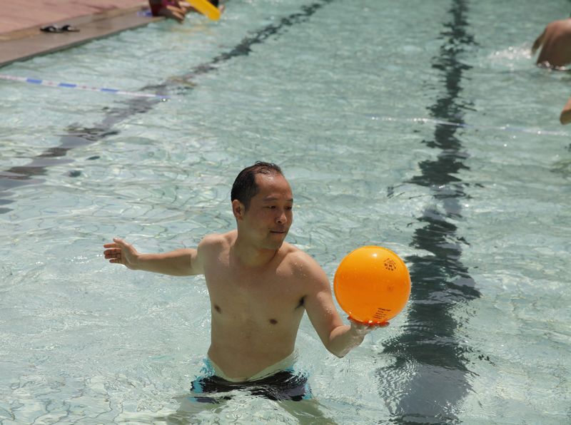 比赛当天,天公一改连日的阴雨,艳阳高照,公司游泳池里热闹非凡,员工的参赛热度足可以和当日的天气媲美。上午9时整,男子组50米蛙泳在哨声中拉开序幕。像蛟龙入海般,参赛选手以矫健的身姿跃入水中,收腿、翻脚、登水,臂腿配合,选手们在水中拼力比劲,啦啦队在岸上呐喊助威,谁先到达终点并不重要,重要的是传播一种快乐运动、健康生活的理念。