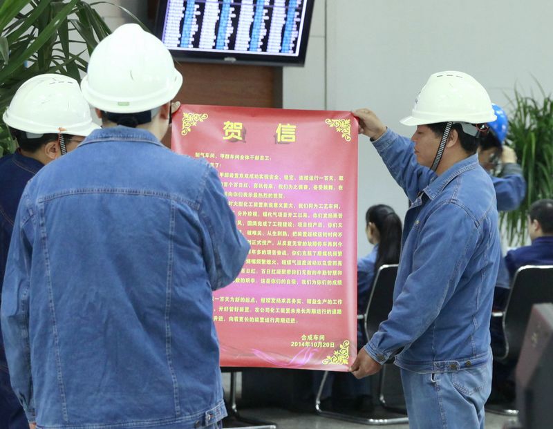 上午9:30点,在大红锣鼓的带领下,公司领导陈林、梁洪、曾家其、宋玉,总经理助理杨志,各专业副总工程师、职能部门、生产、辅助车间负责人,喜气洋洋地从公司大门出发,前往制气、甲醇车间祝捷。