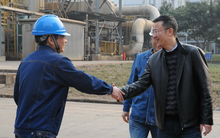 集团副总经理胡均、公司总经理陈林一行还来到公司生产调度室、合成以及尿素主控室,在表达新春问候的同时,详细了解了装置生产运行情况。