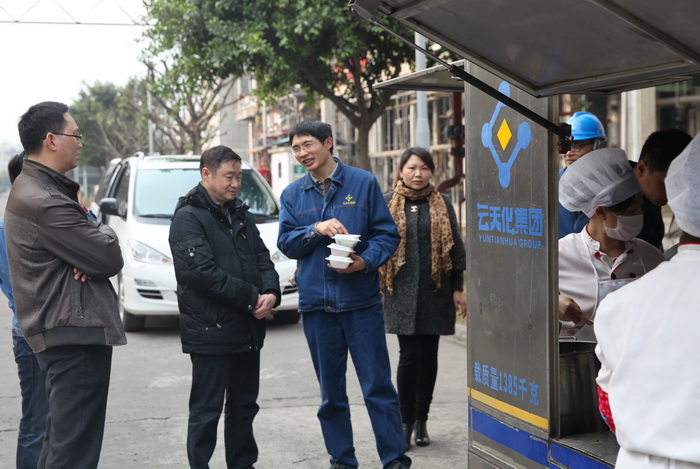 今年的除夕,集团公司副总经理胡均也专程从昆明来到水富云天化,与公司总经理陈林、副总经理曾家其,副总工程师雷坚、邓万明等领导分三组,带上可口的饭菜来到生产现场看望和慰问了当班员工,将云天化大家庭的温暖情意传递给员工。