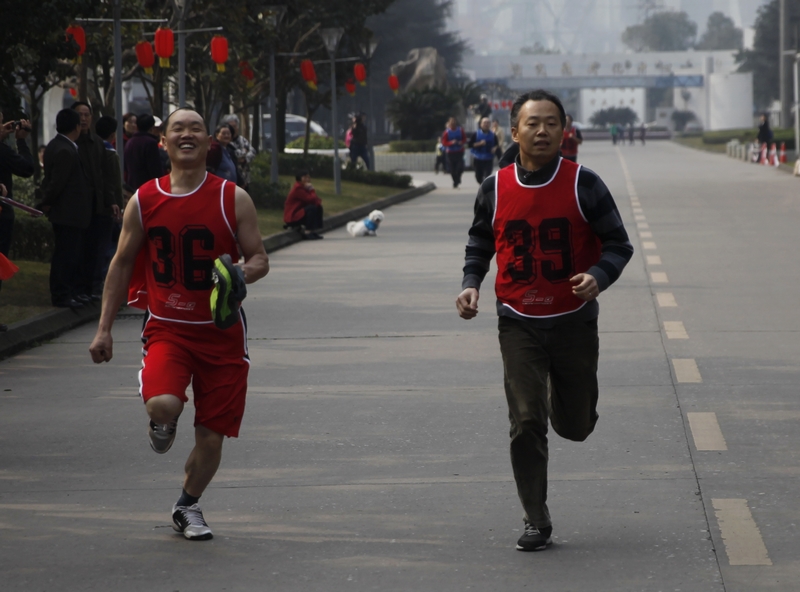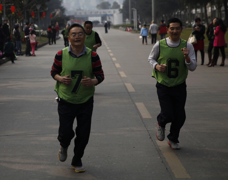 整过比赛显得轻松活泼,完全没有正式比赛中的那种严肃和紧张,有的跑累了,还稍作歇息,走几步,又开始慢跑;还有女职工两人一组,手拉手地,有说有笑地前行,一副醉翁之意不在酒的样子。当然,也有实力派的参赛职工,全程奋力出击,以赛出自己的最佳水平。