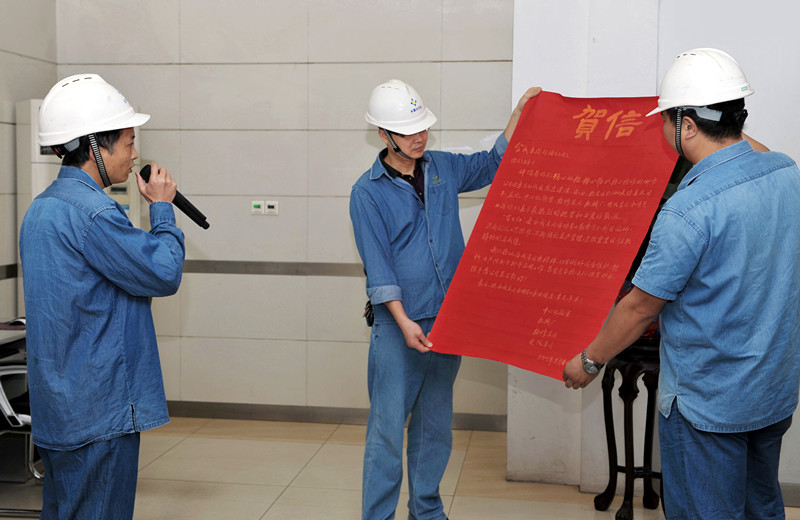 机械厂、电仪、检修、中心化验室代表宣读贺信