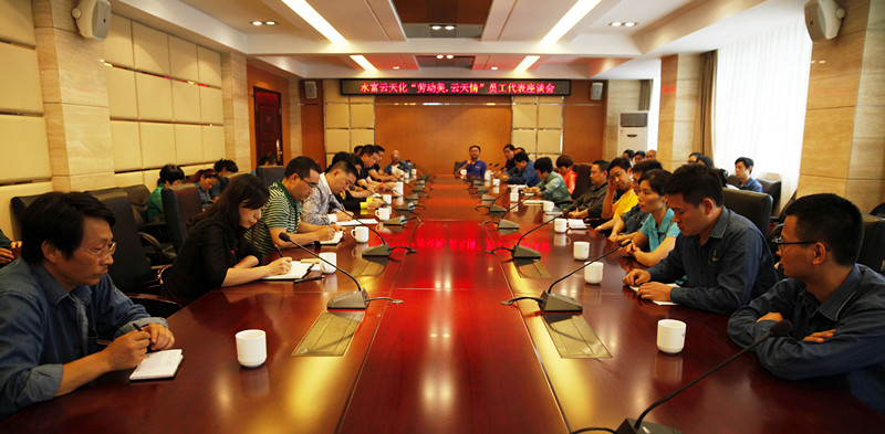 5月是劳动者的节日,为唱响“崇尚劳动 劳动光荣”的主旋律,激发广大职工的聪明才智,5月29下午,水富云天化工会组织召开“劳动美.云天情”员工代表座谈会。公司劳模代表、巾帼标兵代表、优秀班组代表、驻外项目建设人员代表以及各相关部门负责人、基层工会主席齐聚一堂,大家谈体会、提建议,共话劳动光荣,表达爱企之情。