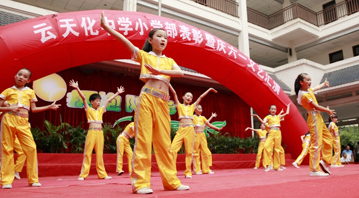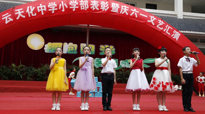 张张笑脸,漾起节日的欢乐;星星火炬,唱响嘹亮的队歌,2015年6月1日,云天化中学小学部迎来了“拥抱阳光,幸福成长”文艺汇演暨颁奖典礼。