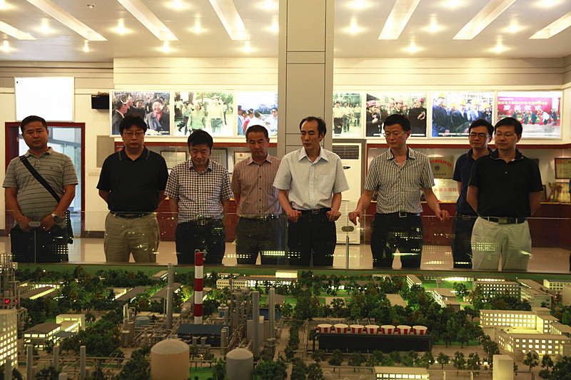 在公司荣誉室,钱治家一行听取了公司沙盘模型讲解,对公司发展历史、装置运行等进行了了解。在合成车间、制醇车间,钱治家与当班员工亲切握手交谈,了解了装置工艺流程、生产负荷、天然气使用等方面的情况。