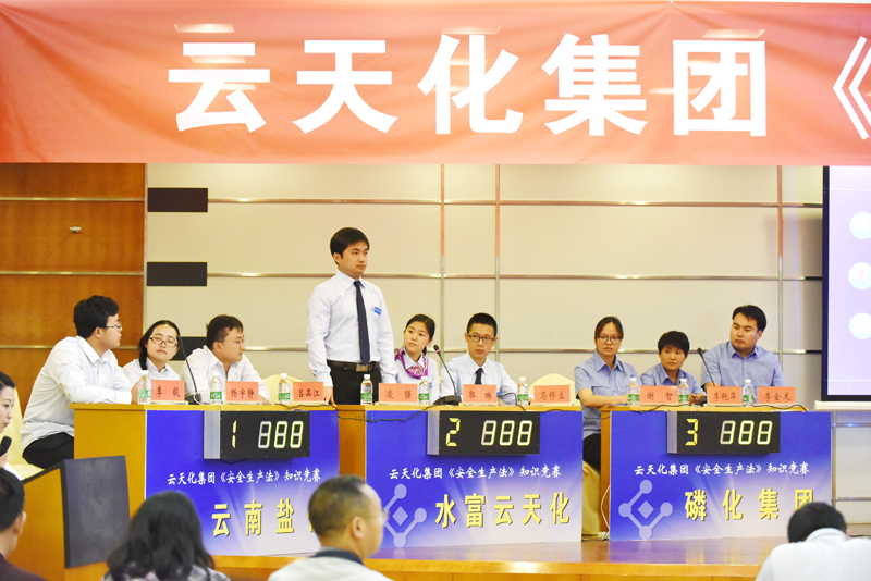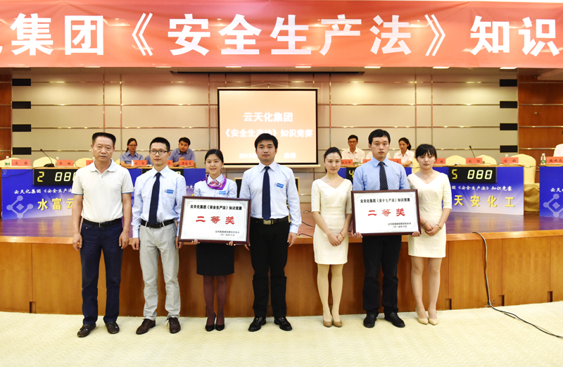 为进一步提高广大职工学习新《安全生产法》的积极性,把安全生产贯彻落实到工作中,日前,集团公司举办《安全生产法》知识竞赛,来自集团所属的水富云天化、磷化集团、重庆玻纤、云南盐化、天安化工、股份云峰6支代表队参加了竞赛,最终公司获得第二名。