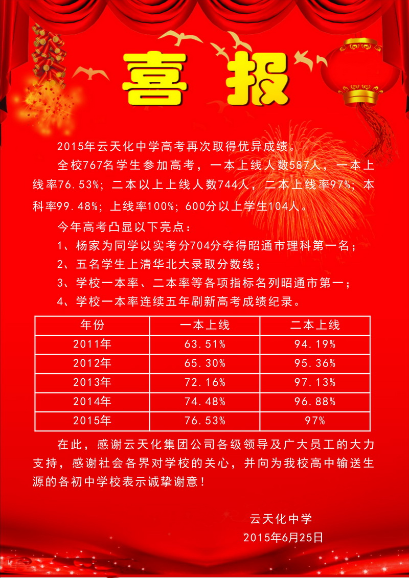 2015年云天化中学高考喜报