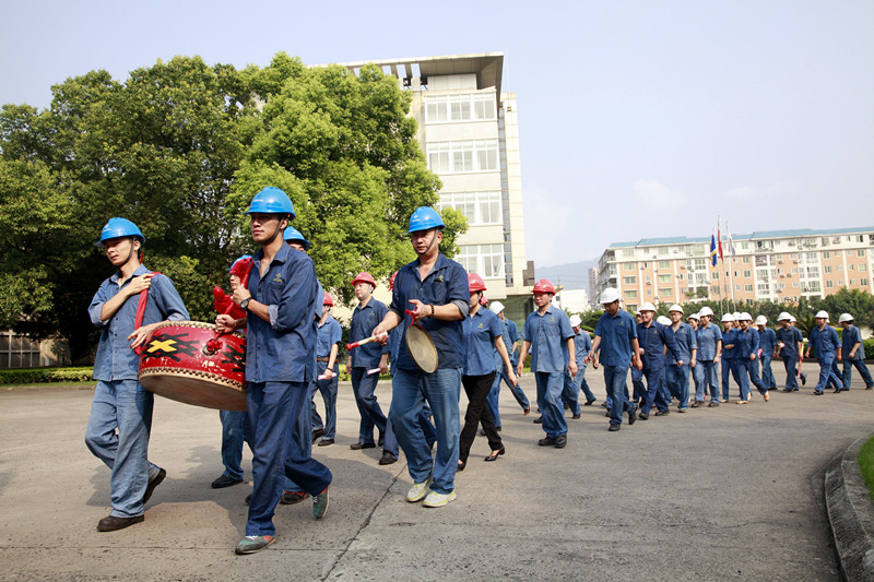 早上9点30,在欢庆锣鼓的带领下,祝捷队伍从厂大门出发