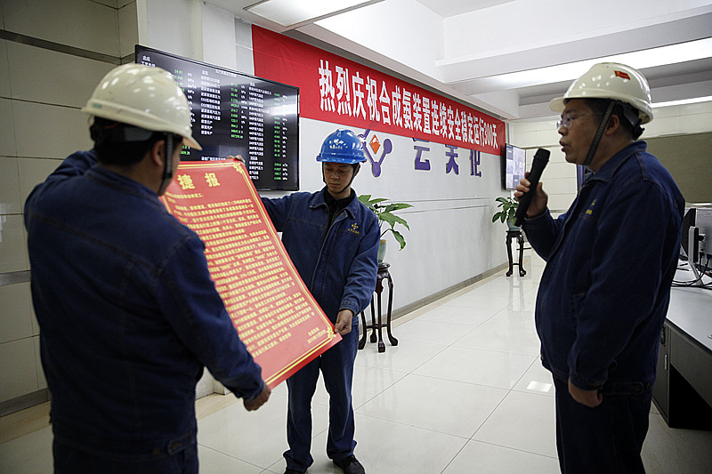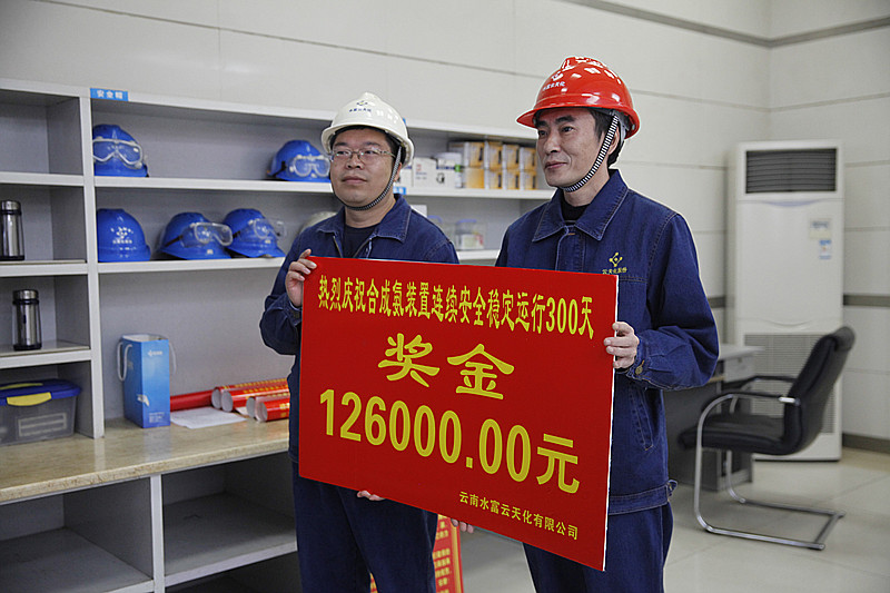 2015年11月20日,水富云天化合成氨装置迎来了装置生产史上的第七个连续安全运行300天,实现了合成氨装置今年第三个“百日红”,这也是合成氨装置投产以来的第58个“百日红”,喜讯传来水富云天化全体员工为之振奋并举行了隆重的祝捷仪式。
