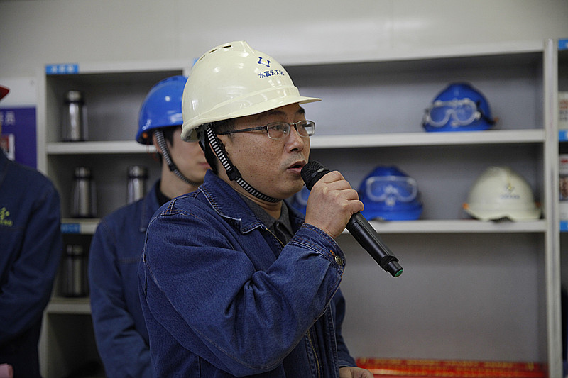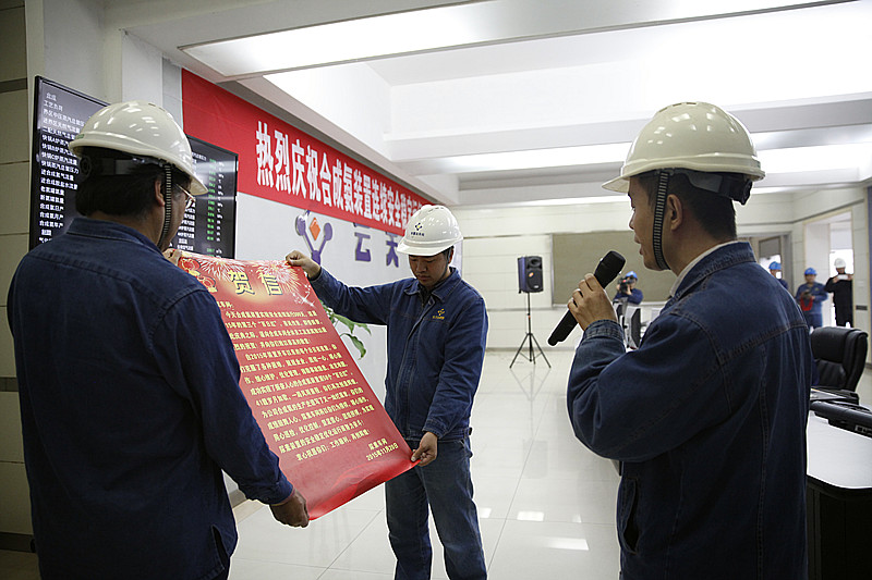 进入合成界区后,合成车间干部员工代表列队欢迎祝捷队伍的到来。祝捷仪式在合成车间主控室举行,水富云天化党委书记梁洪主持了祝捷仪式。