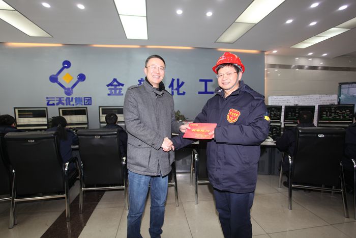 1月13日,集团公司总经理胡均、副总经理朱明松一行冒着呼伦贝尔零下30度的严寒来到金新化工,看望慰问奋战在严寒冬日一线的云天化北疆创业将士,实地调研金新化工装置运行、生产经营情况及东明矿业煤炭采选、销售情况。