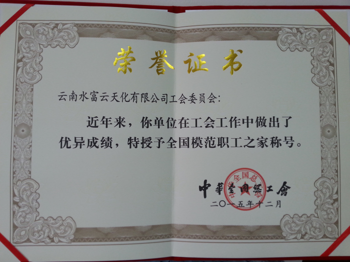 据悉,“全国模范职工之家”荣誉称号由中华全国总工会设立,是全国工会系统表彰先进集体的最高荣誉,也是国家对基层工会工作的最高褒奖。此项荣誉,是对水富云天化工会多年来坚持融入中心服务大局,建设和谐劳动关系企业工作的充分肯定,标志着公司“职工之家”建设迈上了一个新台阶。下步,公司工会将继续履职尽责,适应新常态,激发新活力,实现新作为,以勤勉敬业的工作态度、严谨务实的工作作风、创新突破的工作精神、精益求精的工作品质,团结动员广大职工为推动企业转型升级和创新发展作出新的更大贡献。