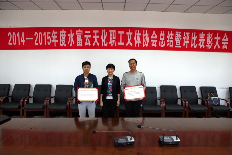 会议最后,公司工会副主席李林、周彤分别为4家获得“公司2014-2015年度优秀职工文体协会”荣誉的协会颁奖,党委副书记、纪委书记、工会主席宋玉为获得“股份公司2015年度优秀职工文体协会”的裁判协会、音乐协会代颁奖。
