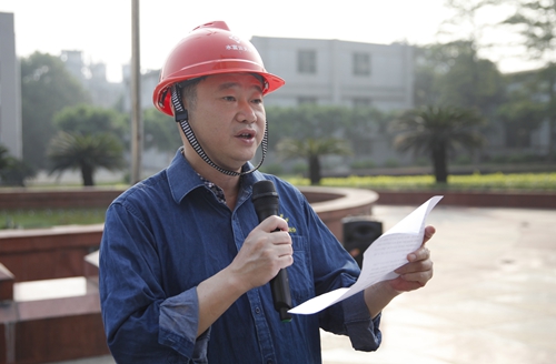 公司总经理陈林宣布升安全旗指令,副总经理曾家其发表了讲话。