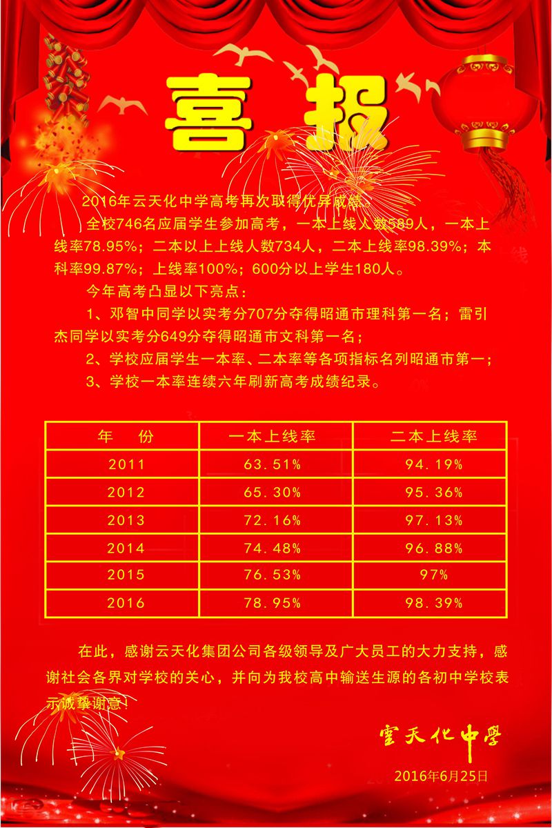 2016云天化中学高考喜报