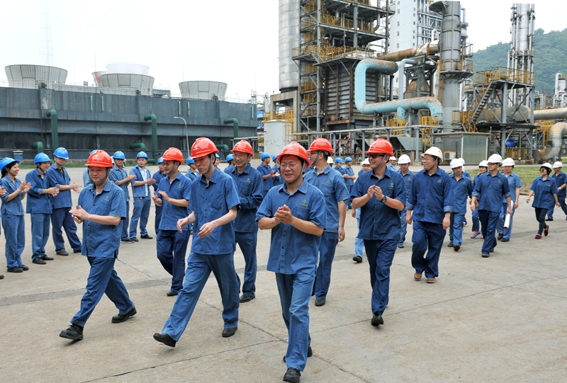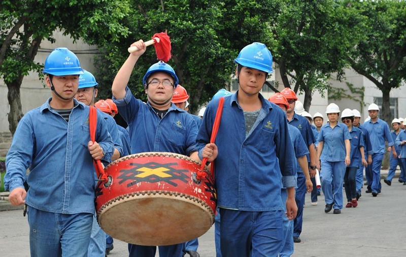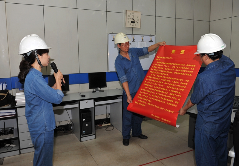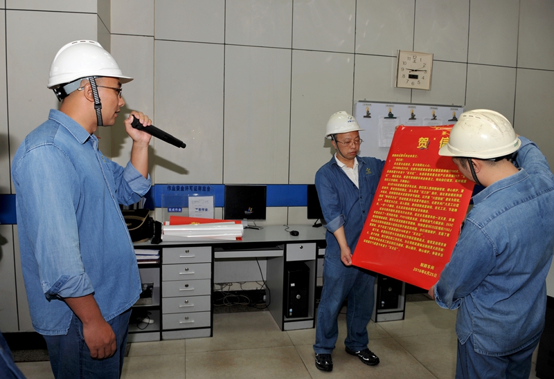 上午9点,祝捷队伍前往尿素装置主控室进行祝捷。