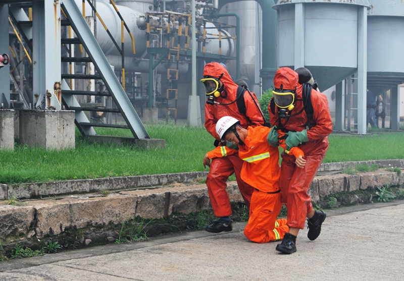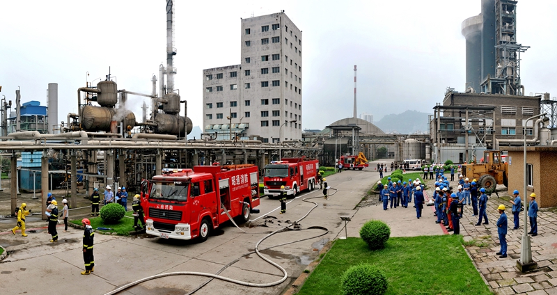 6月27日下午,公司联合水富县共同开展了一场紧张、逼真的合成氨储罐泄漏应急事故演习。此次演习没有事先编制演习方案,完全按照事故应急预案实施,接近于实战状态,从而真实地检验紧急情况下,厂县应急响应能力和事故处理能力。