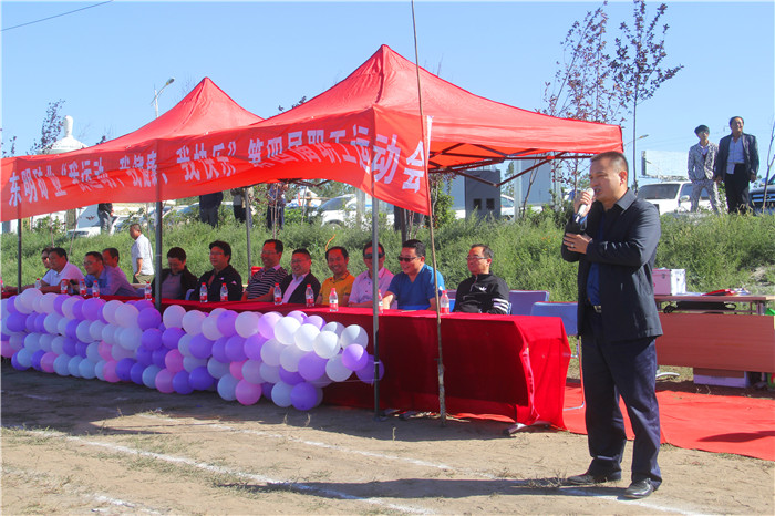 开幕式上,刚从矿区结束现场检查的云天化股份总经理李英翔一行神采奕奕地观看了方队入场仪式。当博克队等十个方队精神抖擞地依次通过主席台,东明人吃苦耐劳、创新拼搏的精神风貌纷纷跃于眼前;当云天化之歌响彻呼伦贝尔大草原,律动操和军体拳那刚柔相济的表演将运动会开幕式推向高潮时,李英翔向大会致热情洋溢的开幕词。他说:“运动会开幕式凸显了全体东明健儿的风采和东明矿业精神,东明健儿的精神风貌充分展示了东明矿业的文化氛围,东明矿业在全体员工的努力下,过去的成绩是坚实的铺垫,未来的成绩在东明人的创造下必将更加辉煌!”接着,东明矿业总经理汪云川宣布东明矿业第四届职工运动会开幕。